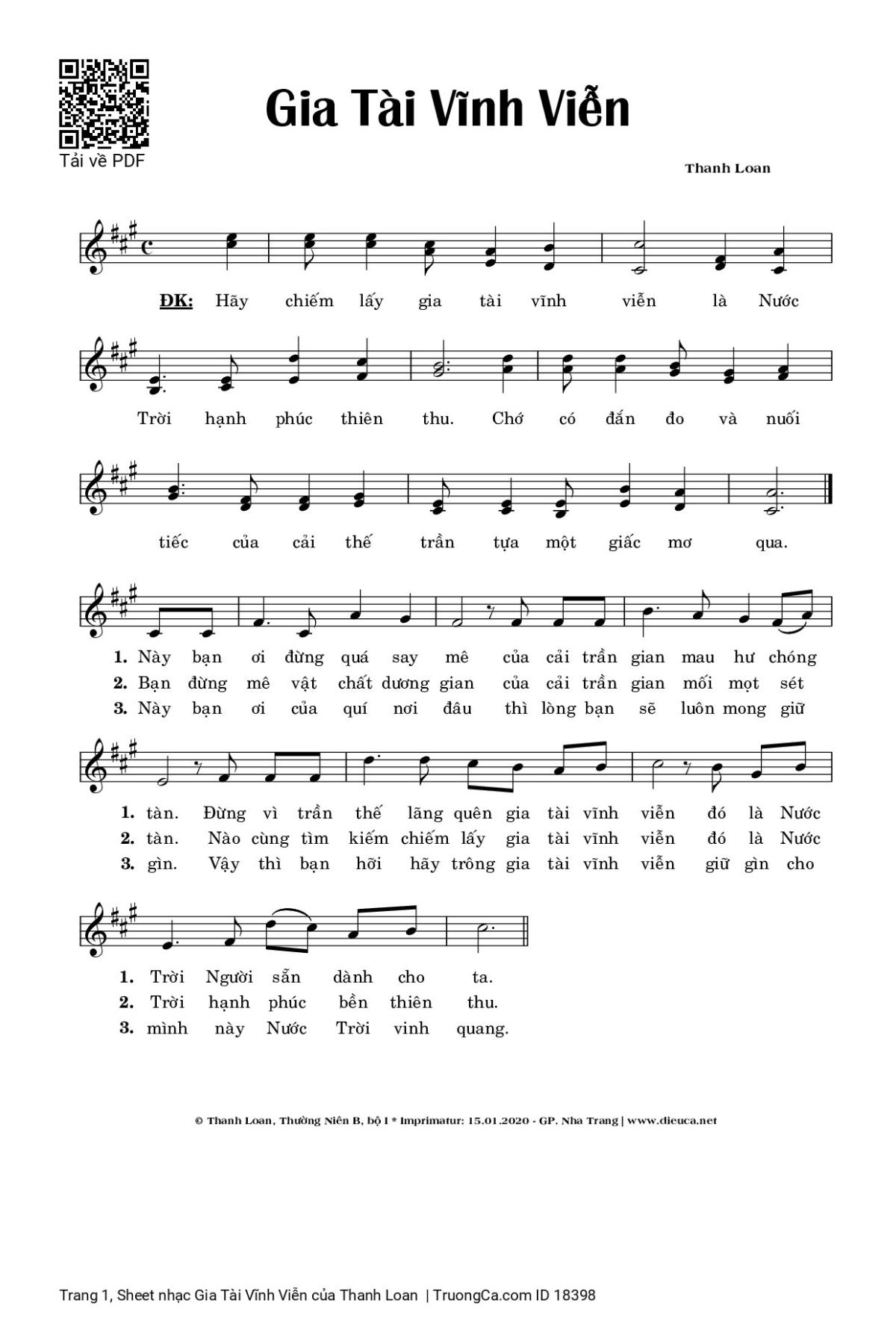 Thanh Loan Hãy chiếm lấy gia tài vĩnh viễn là Nước Trời hạnh phúc thiên thu [PDF] [Sheet] [Lời H.A] [Mp4/Midi]