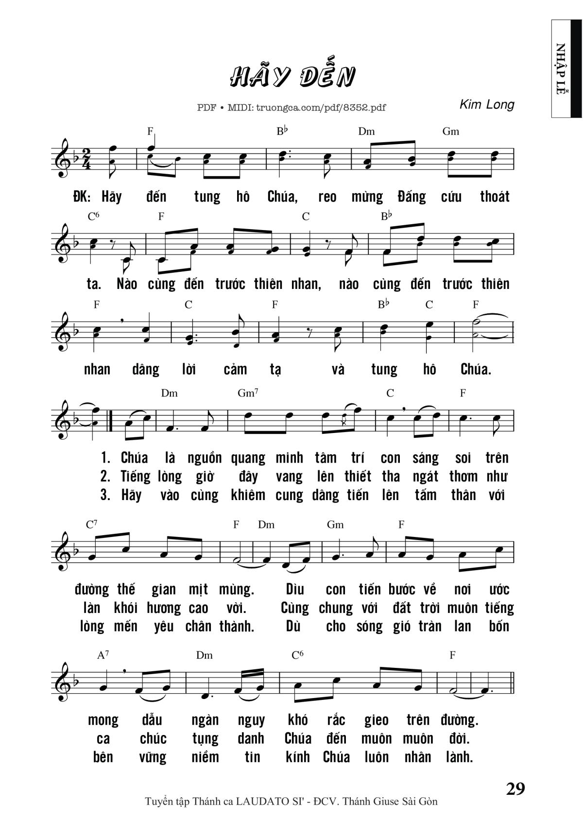 Kim Long Hãy đến tung hô Chúa reo mừng Đấng cứu thoát ta [PDF] [Sheet] [Lời H.A] [Mp4/Midi]