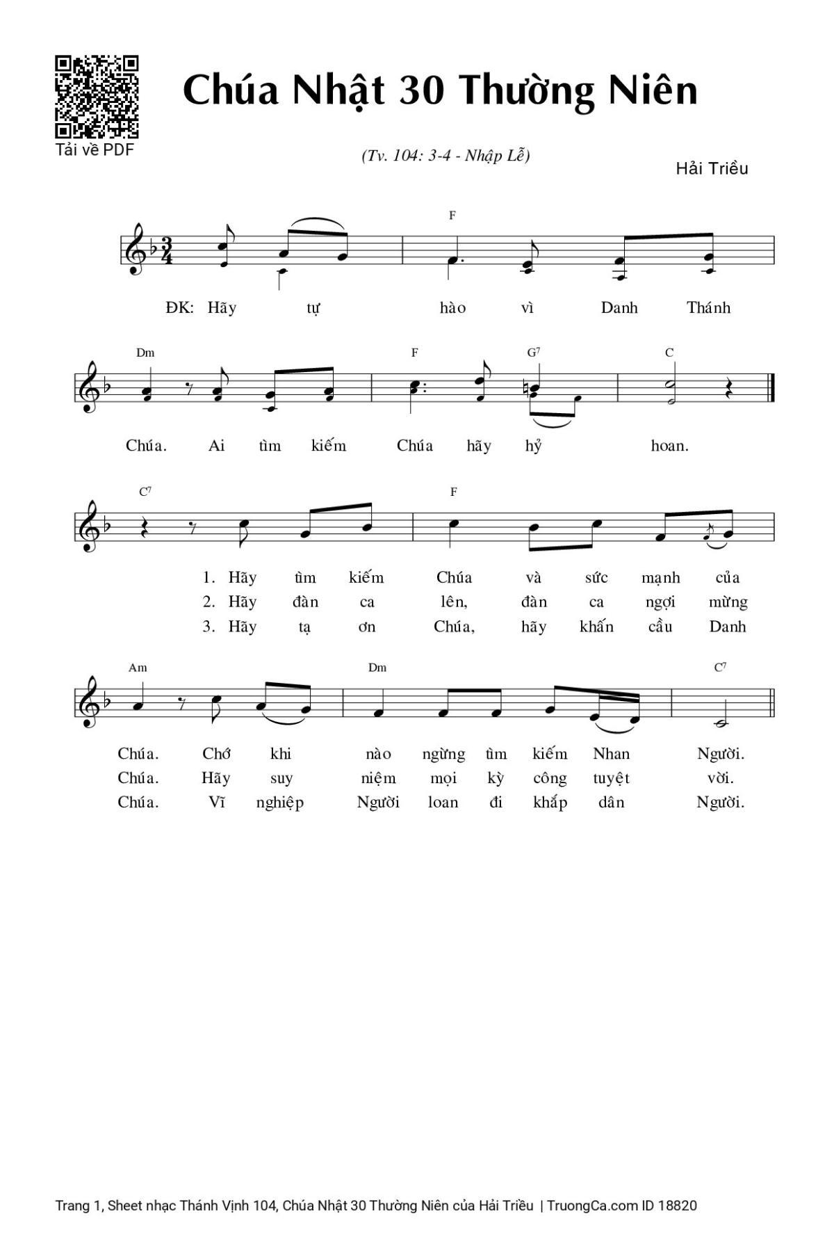 Các sheet PDF tương tự Thánh Vịnh 104, Chúa Nhật 30 Thường Niên: