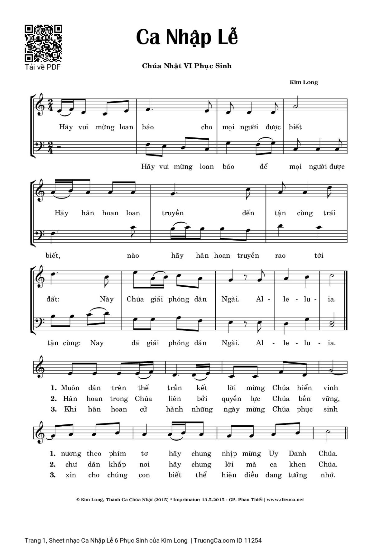 Hãy vui mừng loan báo cho mọi người được biết Hãy hân hoan loan truyền đến tận cùng trái đất: Này Chúa giải phóng dân Ngài. Al-le-lu-ia.