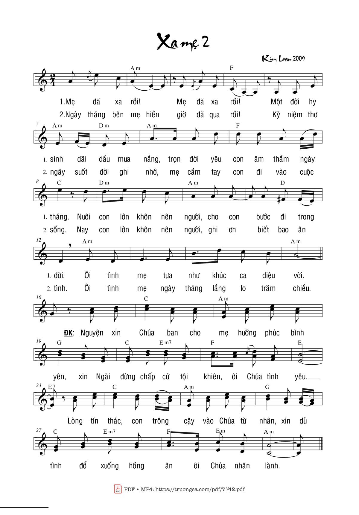 Các sheet PDF tương tự Xa Mẹ 2: