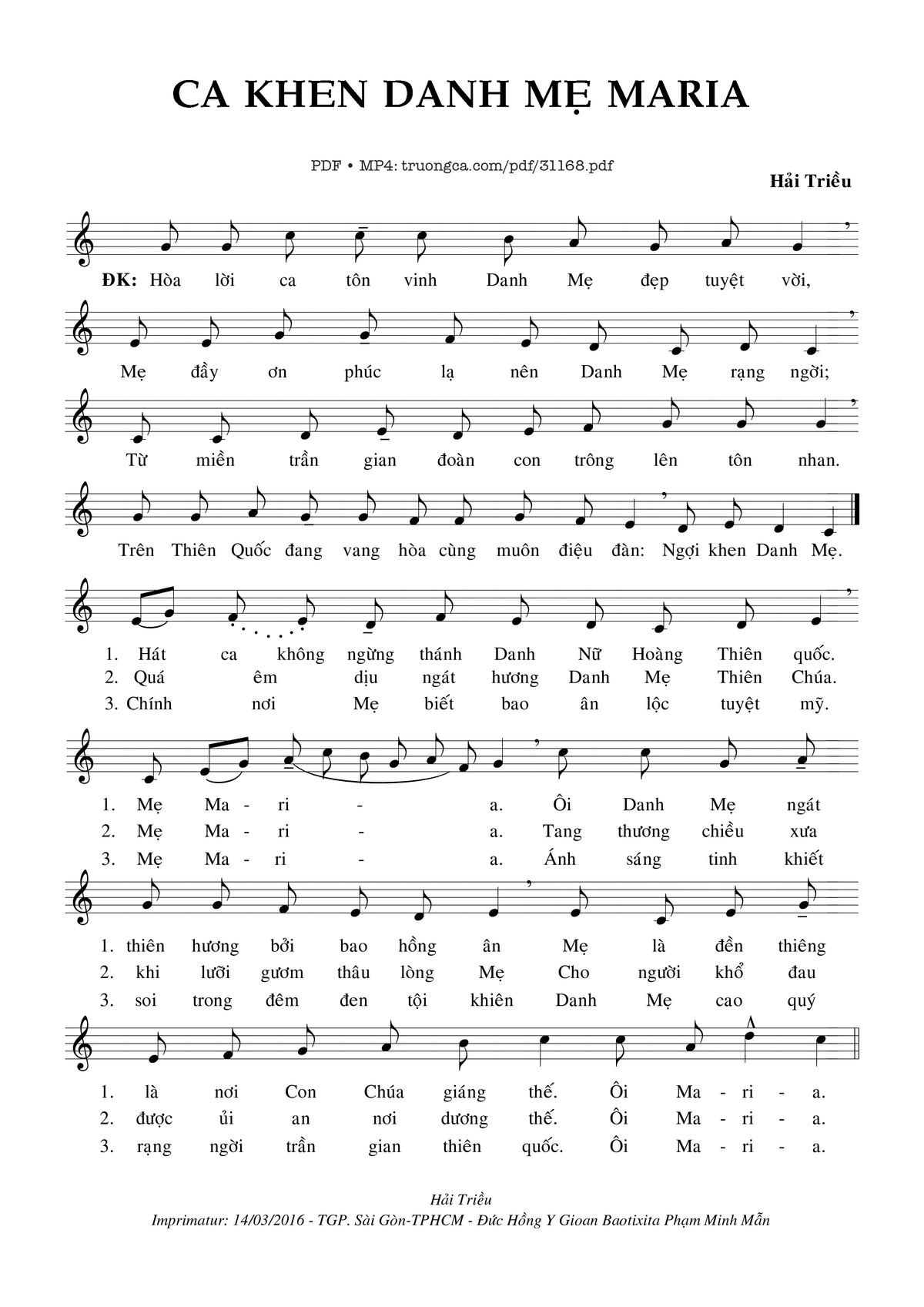 🌾 Imprimatur, Thông tin chuẩn nhận dùng trong phụng vụ Công Giáo: Đức Mẹ – Imprimatur – Tgp. Sài Gòn: 14.03.2016