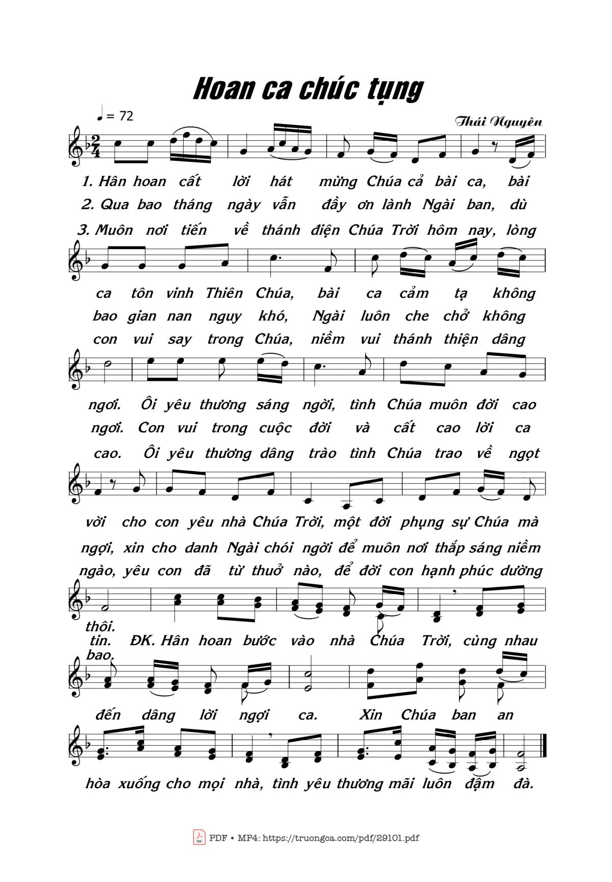 Thái Nguyên Hoan ca cất lời hát mừng Chúa cả bài ca [PDF] [Sheet] [Lời H.A] [Mp4/Midi]