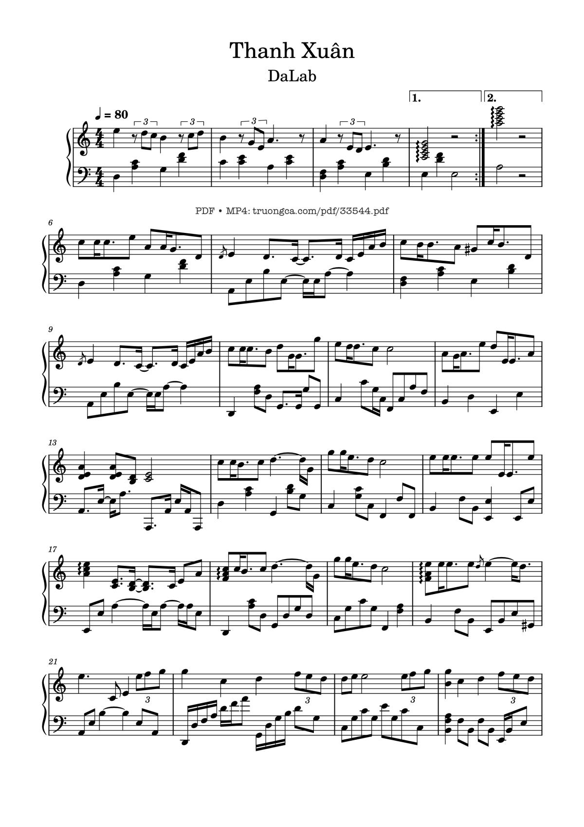 Các sheet PDF tương tự Thanh Xuân Piano: