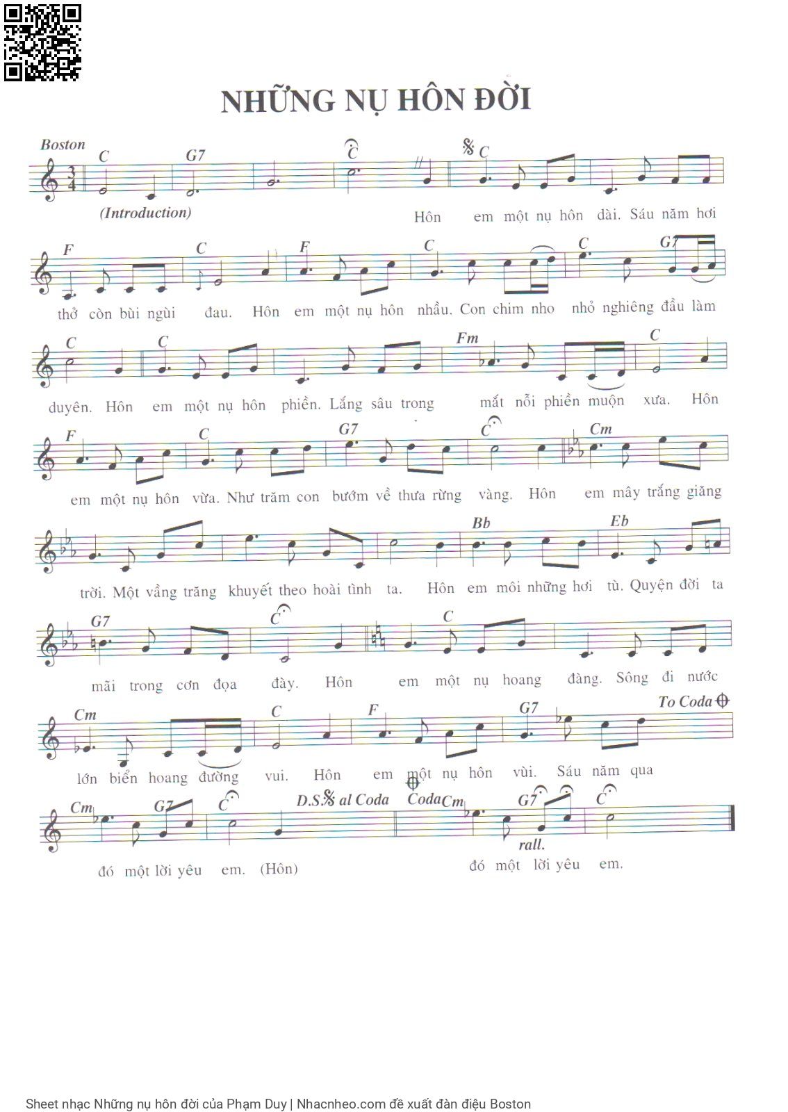 Phạm Duy Hôn em một nụ hôn dài Sáu năm hơi thở còn bùi ngùi đau [PDF] [Sheet] [Lời H.A] [Mp4/Midi]