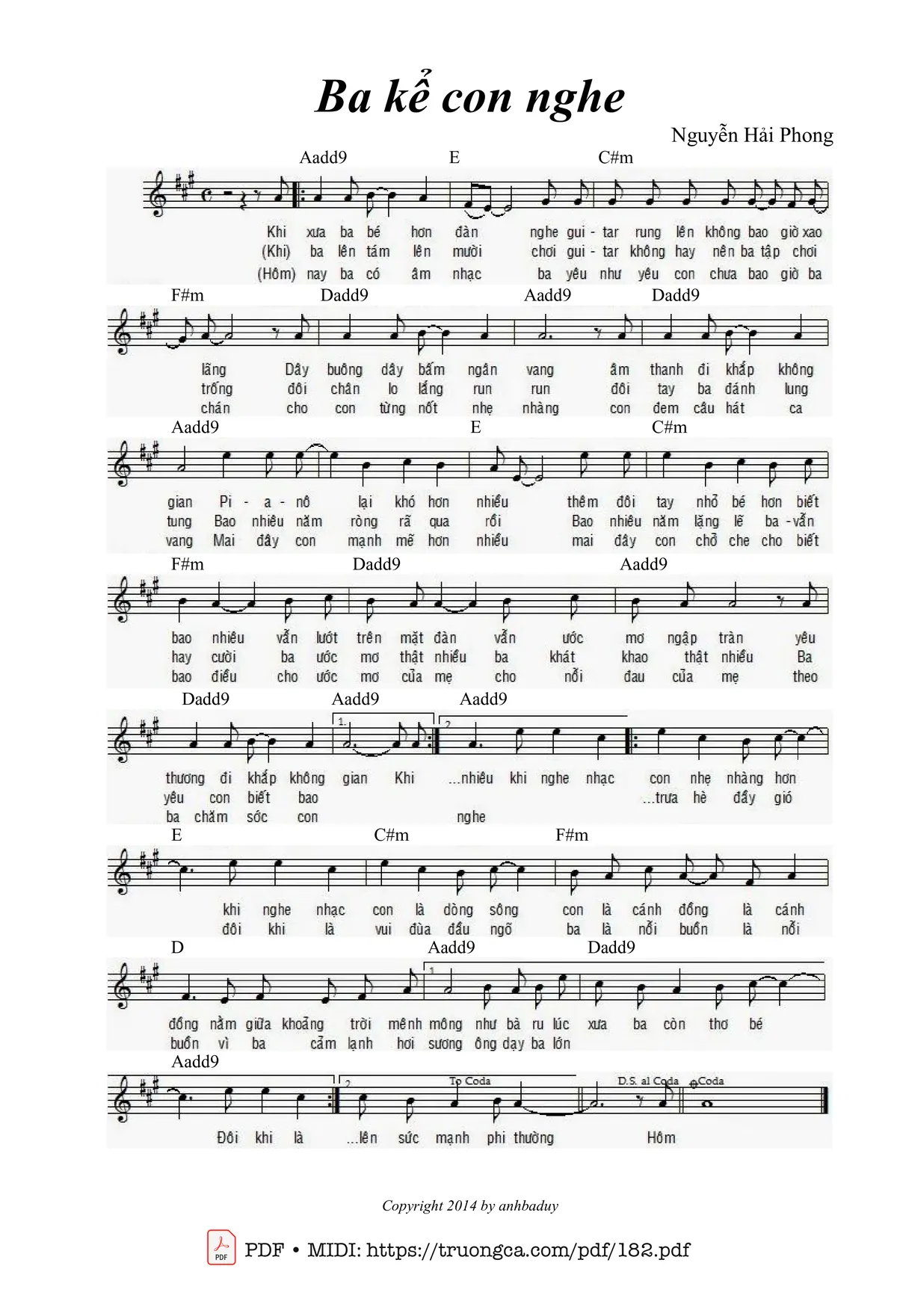 Nguyễn Hải Phong Khi xưa ba bé hơn đàn nghe guitar rung lên không bao giờ xao lãng [PDF] [Sheet] [Lời H.A] [Mp4/Midi] [Lời bình - giai thoại]