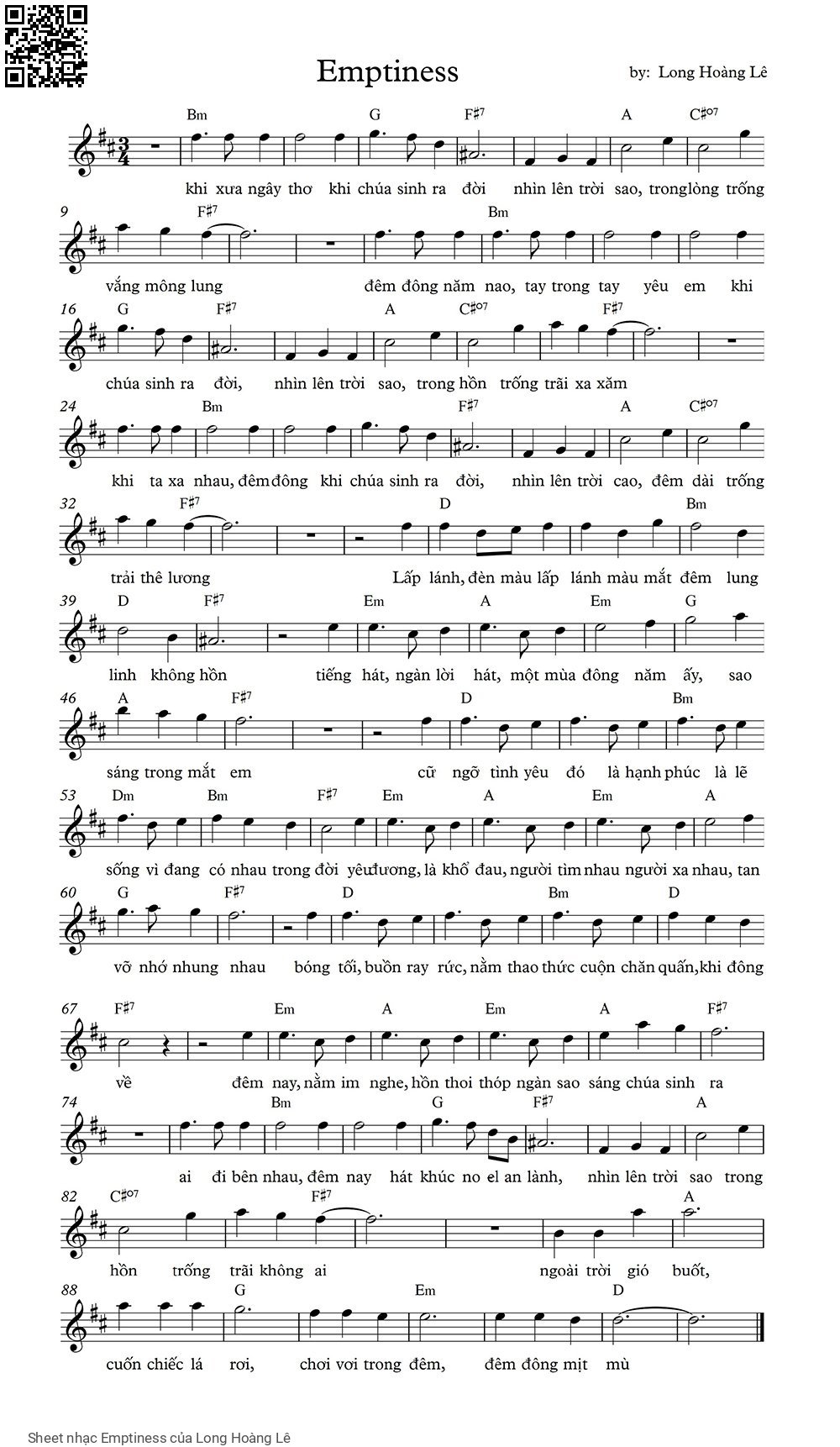Long Hoàng Lê khi xưa ngây thơ khi chúa sinh ra đời Nhìn lên trời sao trong lòng trống vắng mông lung [PDF] [Sheet] [Lời H.A] [Mp4/Midi]