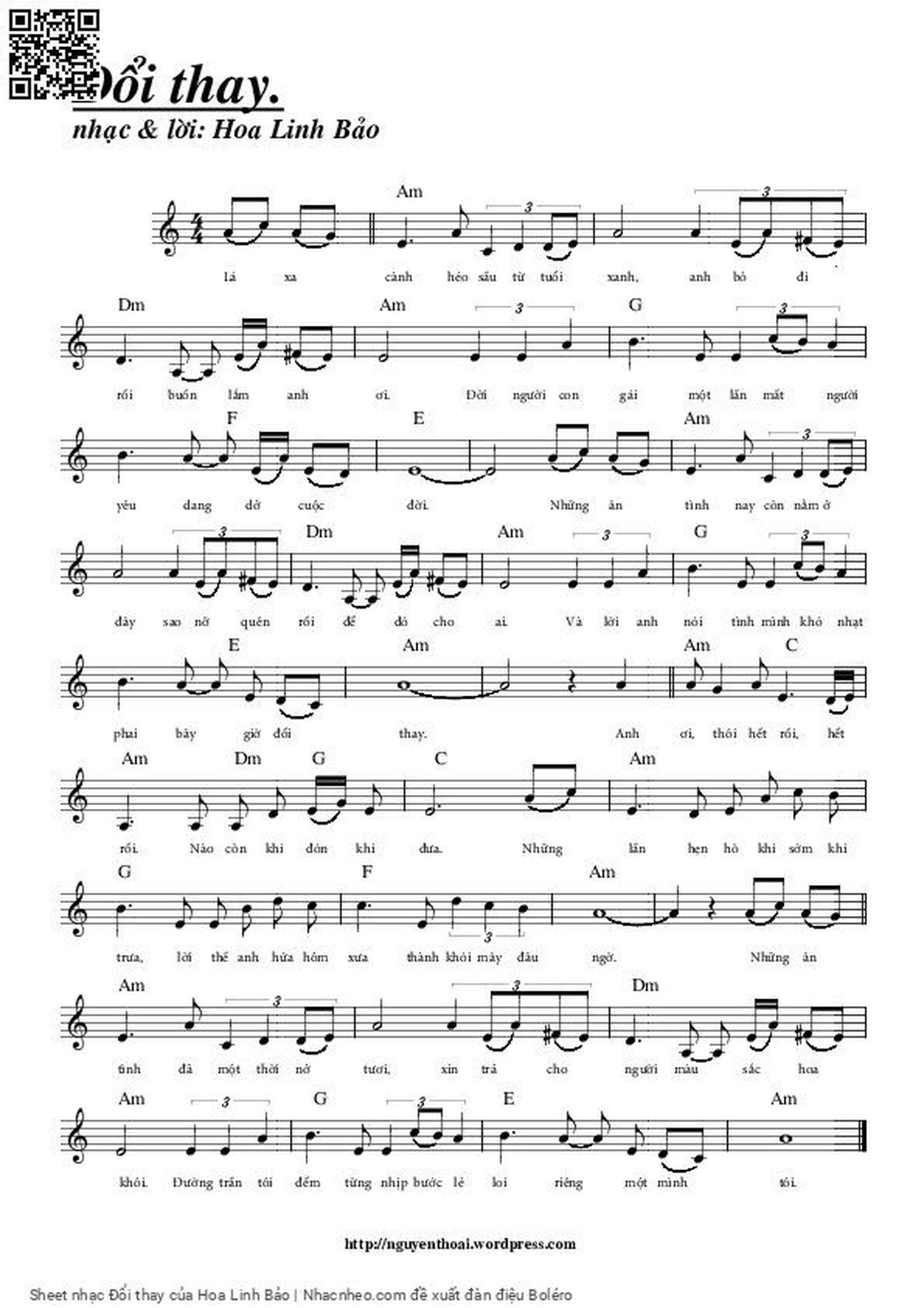 Hoa Linh Bảo Lá xa cành héo sầu từ tuổi xanh Anh bỏ đi rồi buồn lắm anh ơi [PDF] [Sheet] [Lời H.A] [Mp4/Midi]