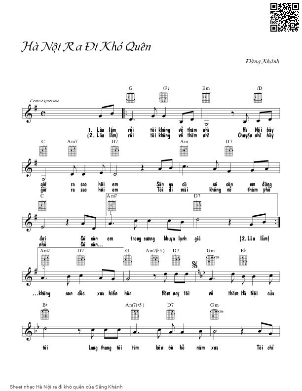 Đăng Khánh Lâu lắm rồi tôi không về thăm nhà Hà Nội bây giờ ra sao hỡi em [PDF] [Sheet] [Lời H.A] [Mp4/Midi]