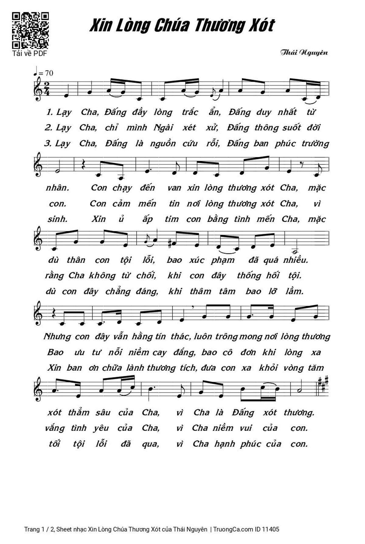 Thái Nguyên Lạy Cha Đấng đầy lòng trắc ẩn Đấng duy nhất từ nhân [PDF] [Sheet] [Lời H.A] [Mp4/Midi]