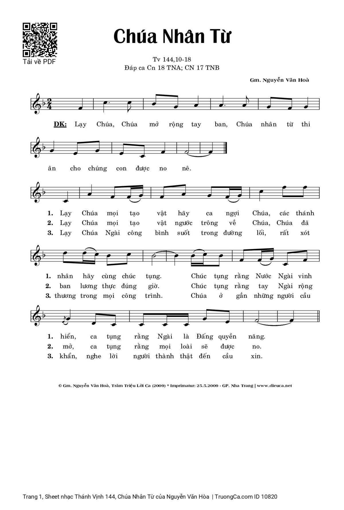 Các sheet PDF tương tự Thánh Vịnh 144, Chúa Nhân Từ: