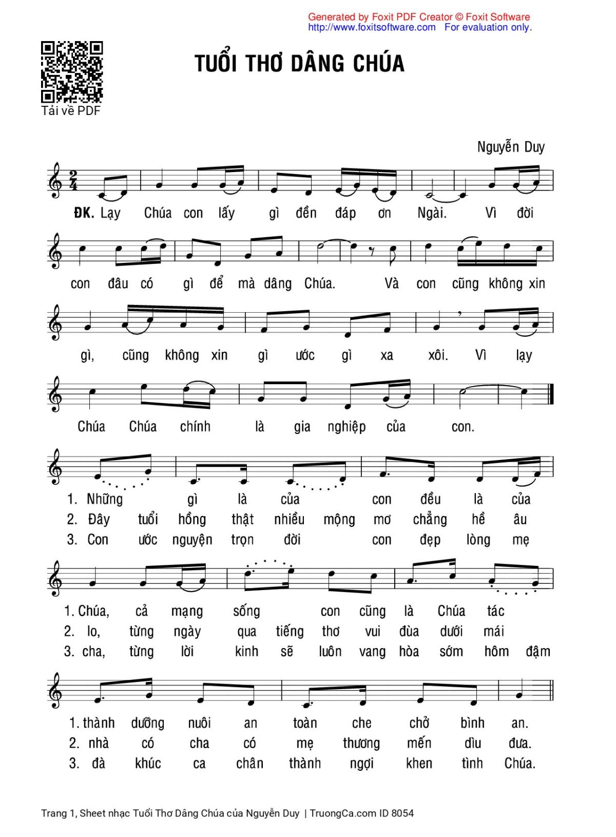 Các sheet PDF tương tự Tuổi Thơ Dâng Chúa: