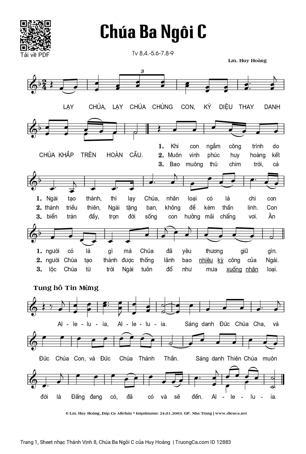 🌾 Thông tin chuẩn nhận dùng trong phụng vụ Công Giáo: Thánh Vịnh – Đáp Ca. Imprimatur – Gp. Nha Trang: 24.01.2003