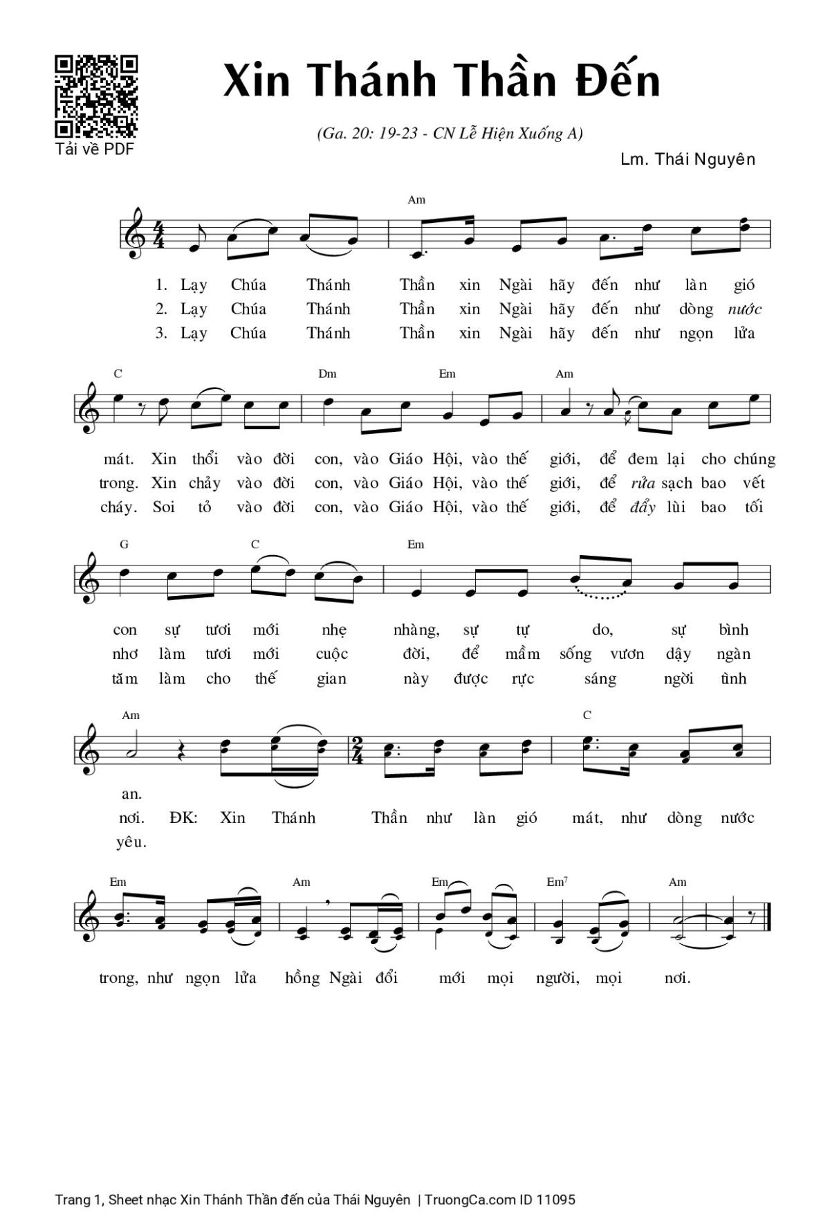 Các sheet PDF tương tự Xin Thánh Thần đến: