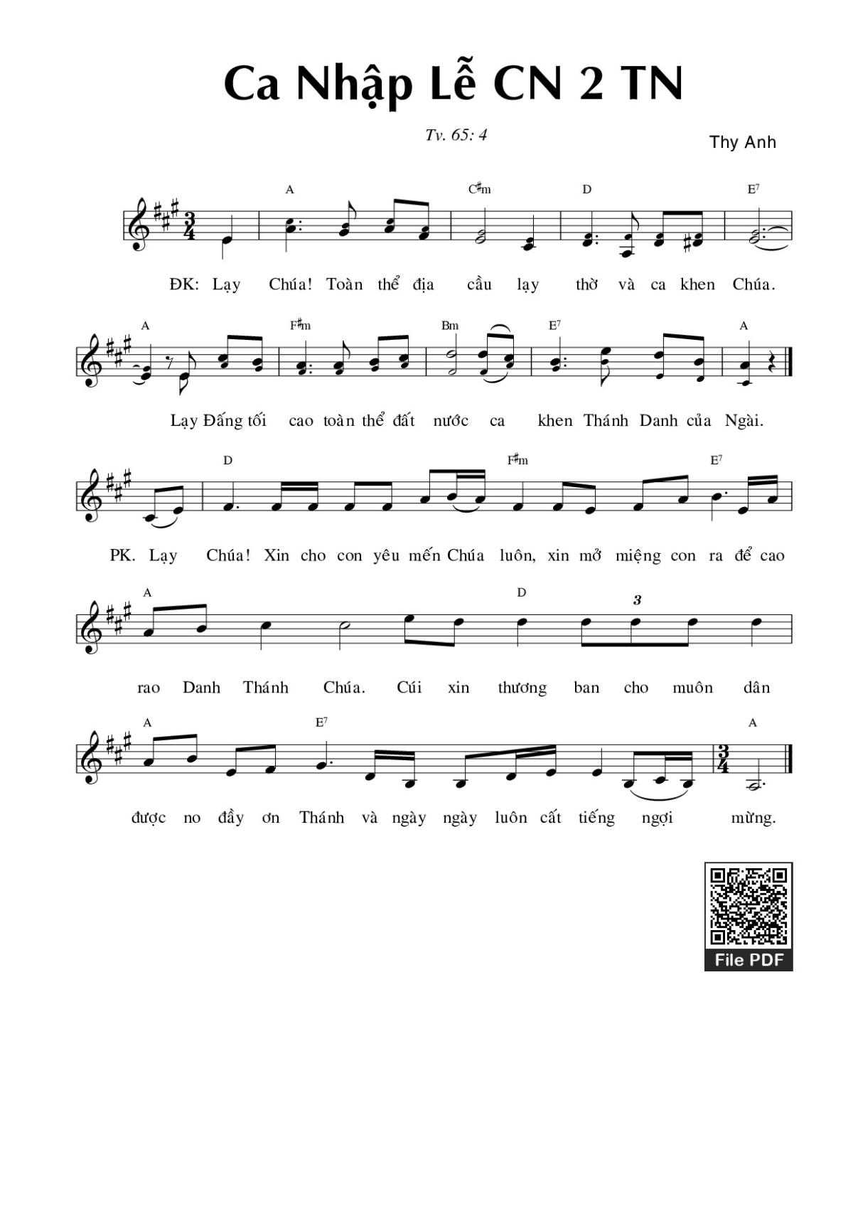 Các sheet PDF tương tự Thánh Vịnh 65, Ca Nhập Lễ Chúa Nhật 2 Thường Niên: