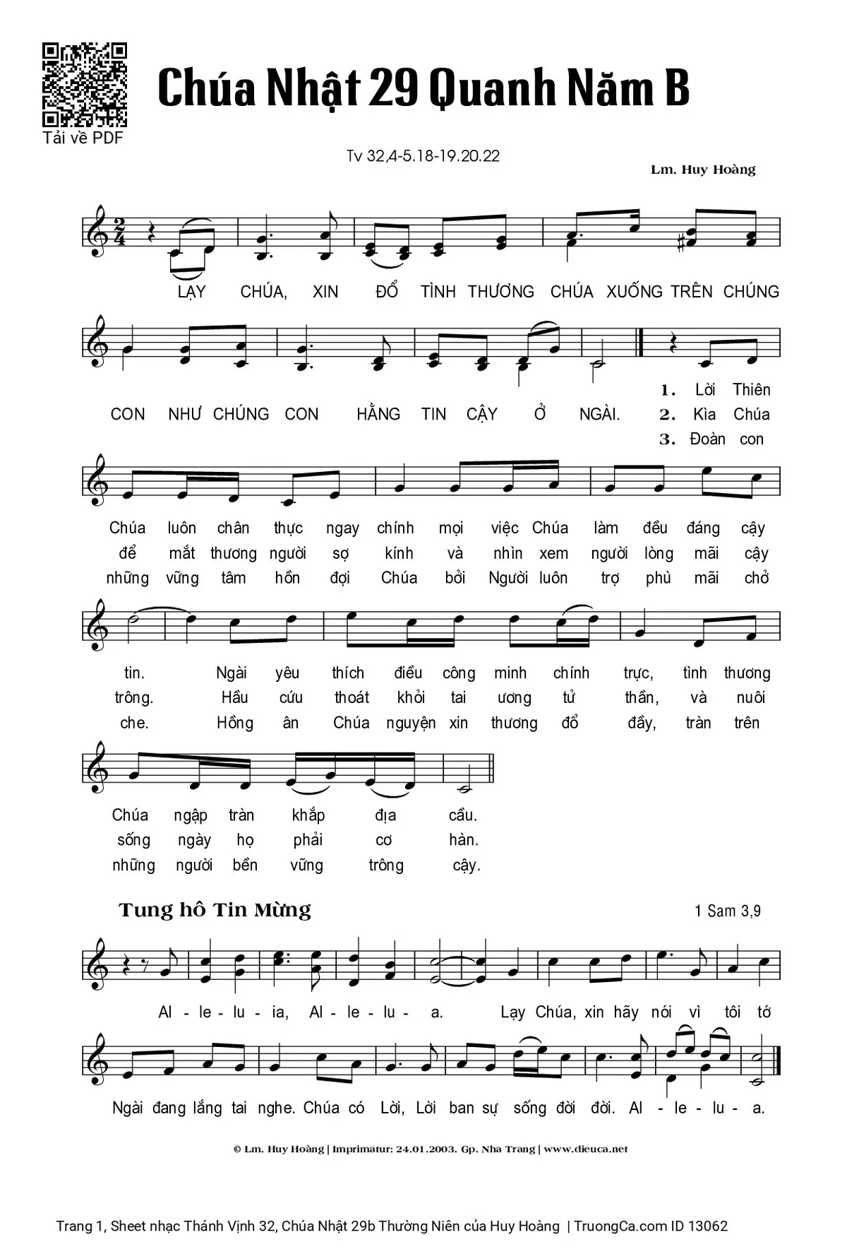 Thể loại 🌾 Nhạc Thánh Ca, 🌾 Thánh Vịnh - Đáp Ca, 🌾 Thánh ca Imprimatur, 🌾 Thánh Vịnh 32