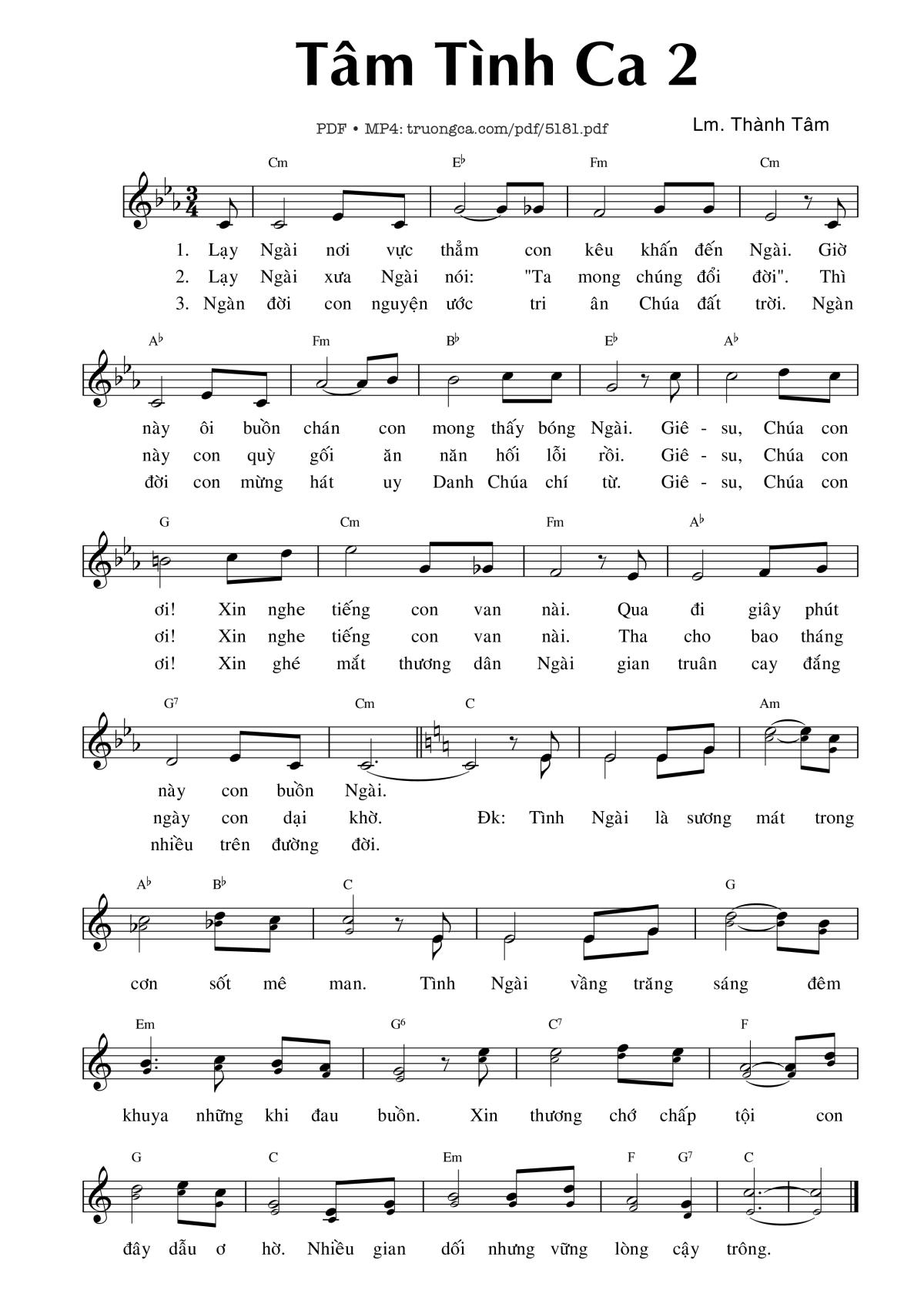 Lm. Thành Tâm Lạy Ngài nơi vực thẳm con kêu khấn đến Ngài [PDF] [Sheet] [Lời H.A] [Mp4/Midi]