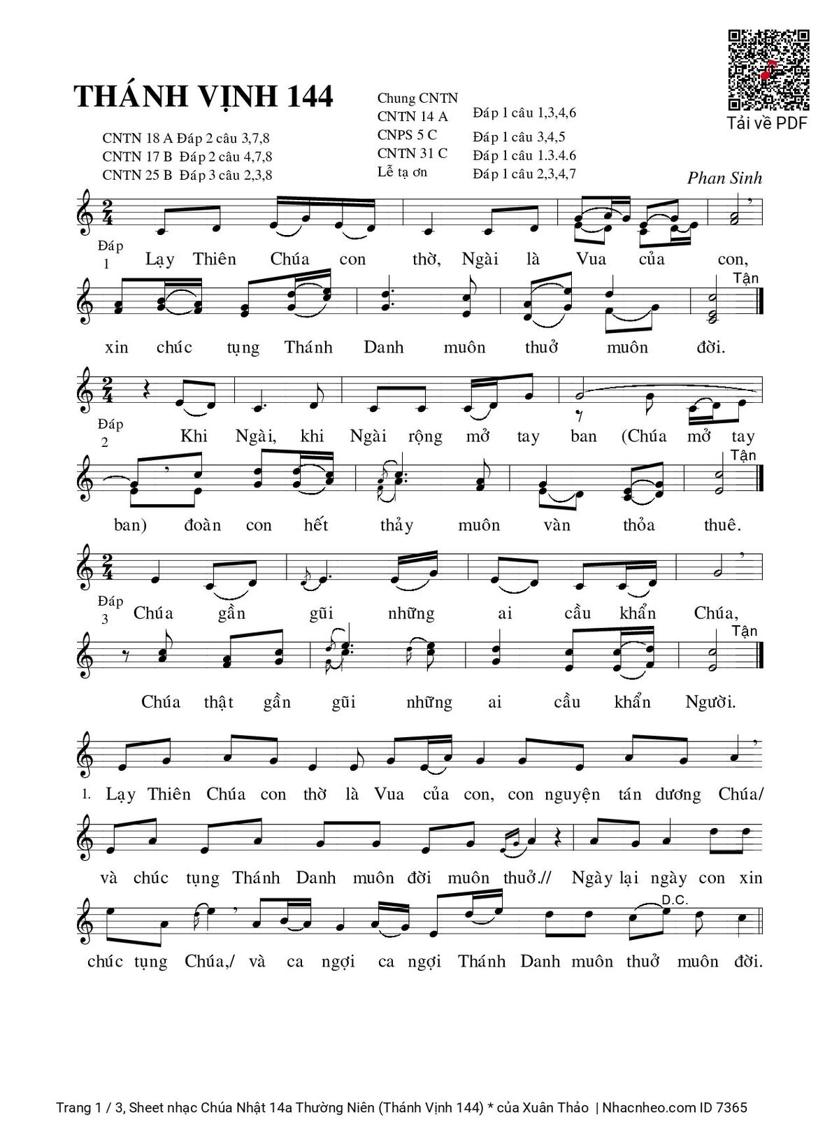 Các sheet PDF tương tự Chúa Nhật 14a Thường Niên (Thánh Vịnh 144):