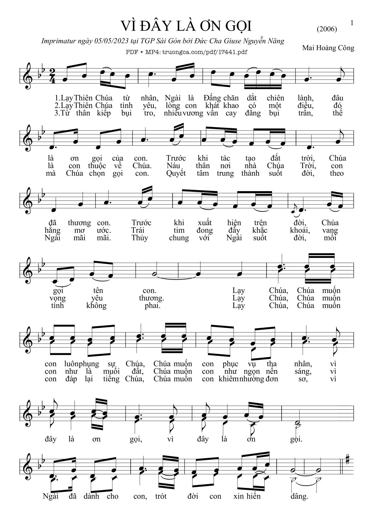 Các sheet PDF tương tự Vì đây Là ơn Gọi: