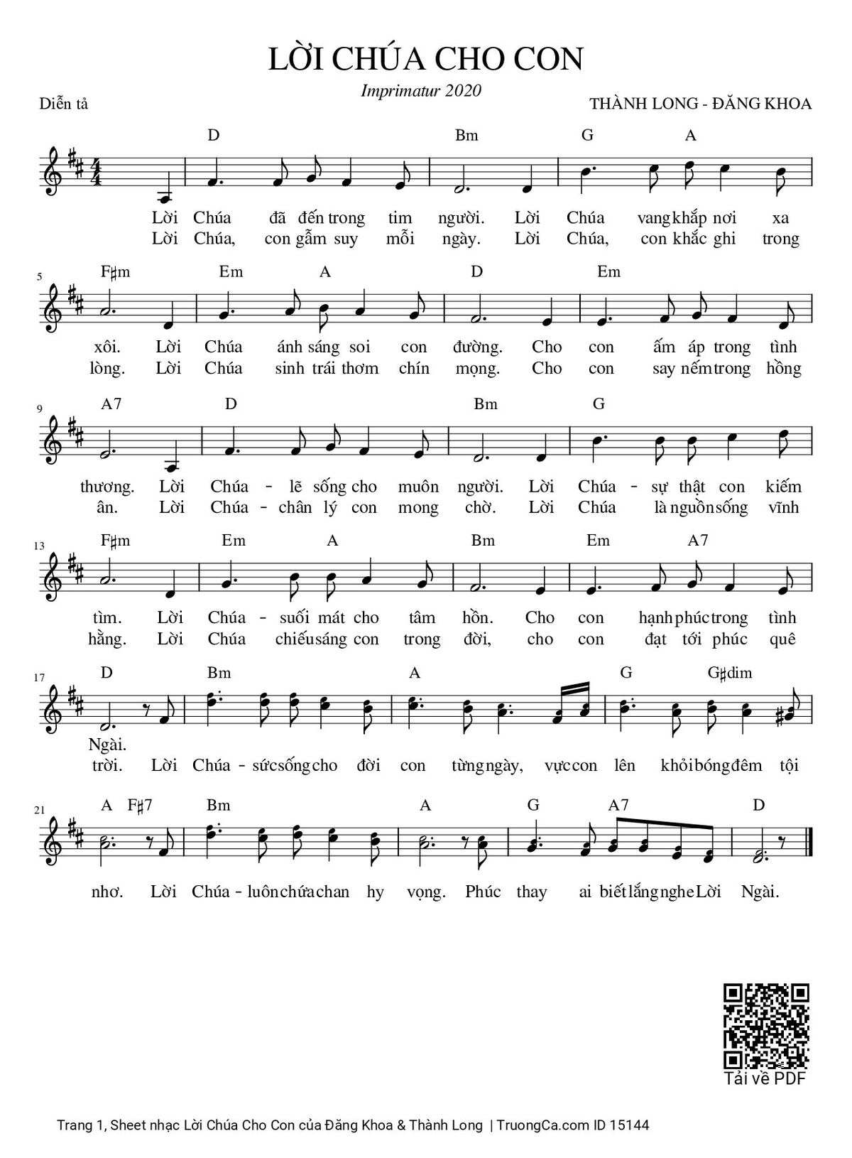 Các sheet PDF tương tự Lời Chúa Cho Con: