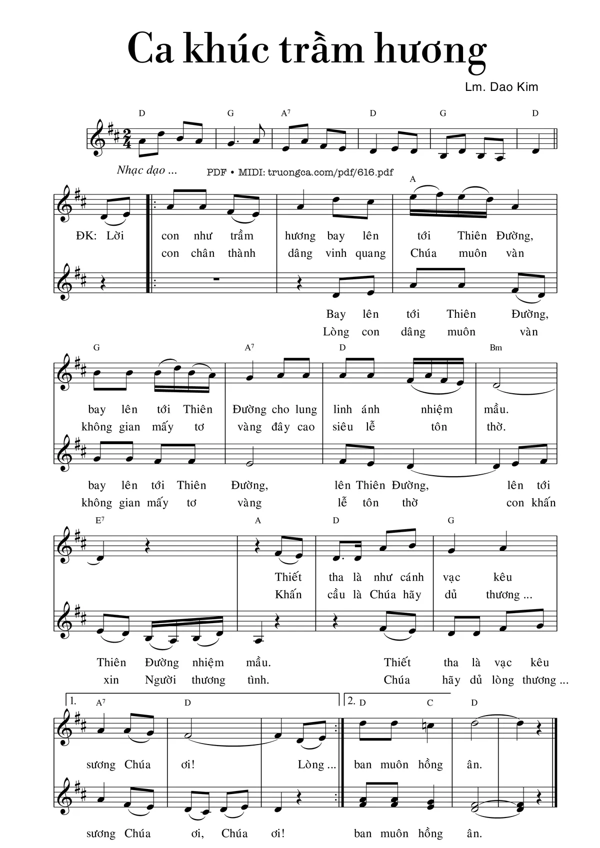 Lm. Dao Kim Lời con như trầm hương Bay lên tới thiên đường [PDF] [Sheet] [Lời H.A] [Mp4/Midi]