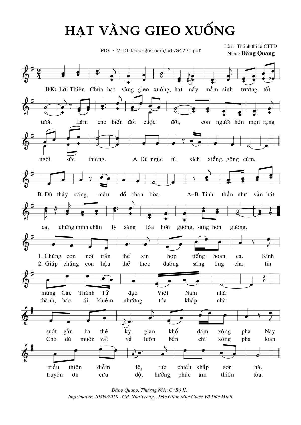 Điệp khúc. Lời Thiên Chúa hạt vàng gieo xuống, hạt nảy mầm sinh trưởng tốt tươi. Làm cho biến đổi cuộc đời, con người hèn mọn rạng ngời sức thiêng. Dù ngục tù, xích xiềng, gông cùm. Dù thây căng, máu đổ chan hòa. Tinh thần như vẫn hát ca, chứng minh chân lý sáng lòa hơn gương, sáng hơn gương