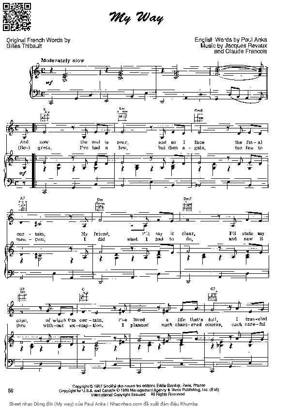 Phần nghe hát Dòng đời (My way) (Paul Anka) được nhúng từ Youtube, Musescore hoặc link ngoài và chịu sự kiểm soát bản quyền của bên thứ ba đó, vì vậy có thể bị xóa hoặc chèn quảng cáo bất kỳ lúc nào. Nếu bạn không nghe - xem được ca sĩ hát tức là đã bị Youtube hoặc Musescore kiểm soát.