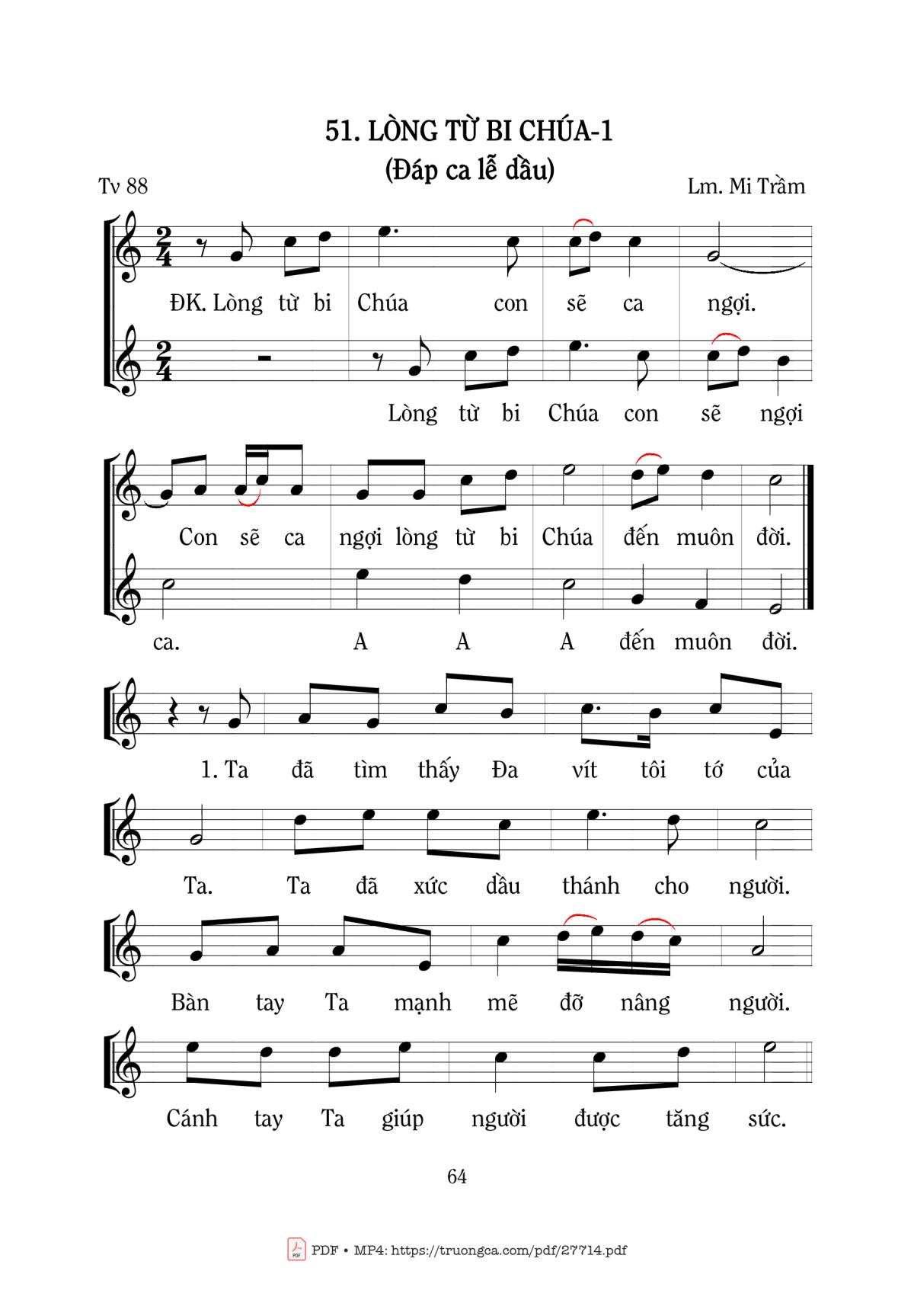 Mi Trầm Lòng từ bi Chúa con sẽ ca ngợi Con sẽ ca ngợi lòng từ bi Chúa đến muôn đời [PDF] [Sheet] [Lời H.A] [Mp4/Midi]