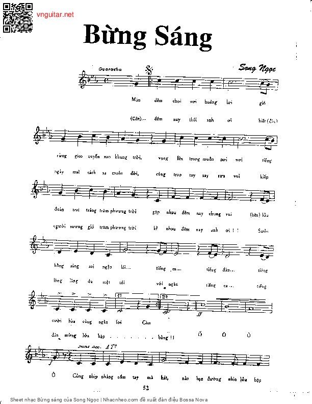 Chọn nút dấu + để tăng tông lên nửa cung, nút dấu - để giảm tông xuống nửa cung. Rê chuột vào hợp âm để xem các thế bấm hợp âm của bài hát Bừng sáng.