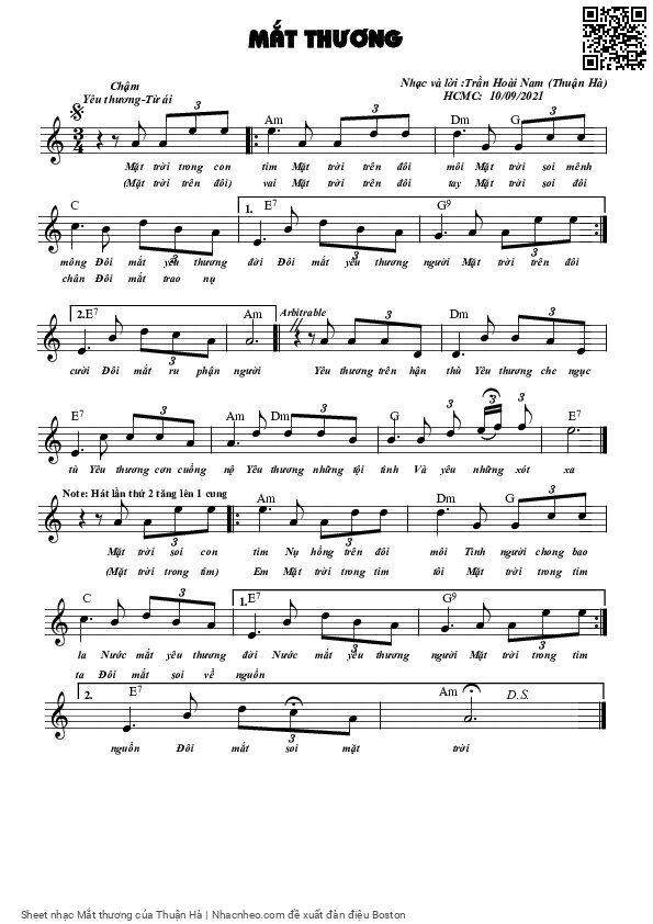 Chọn nút dấu + để tăng tông lên nửa cung, nút dấu - để giảm tông xuống nửa cung. Rê chuột vào hợp âm để xem các thế bấm hợp âm của bài hát Mắt thương.