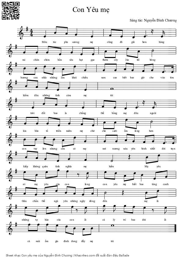 Nguyễn Đình Chương Màu tóc pha sương mẹ cũng đã già hơn [PDF] [Sheet] [Lời H.A] [Mp4/Midi]