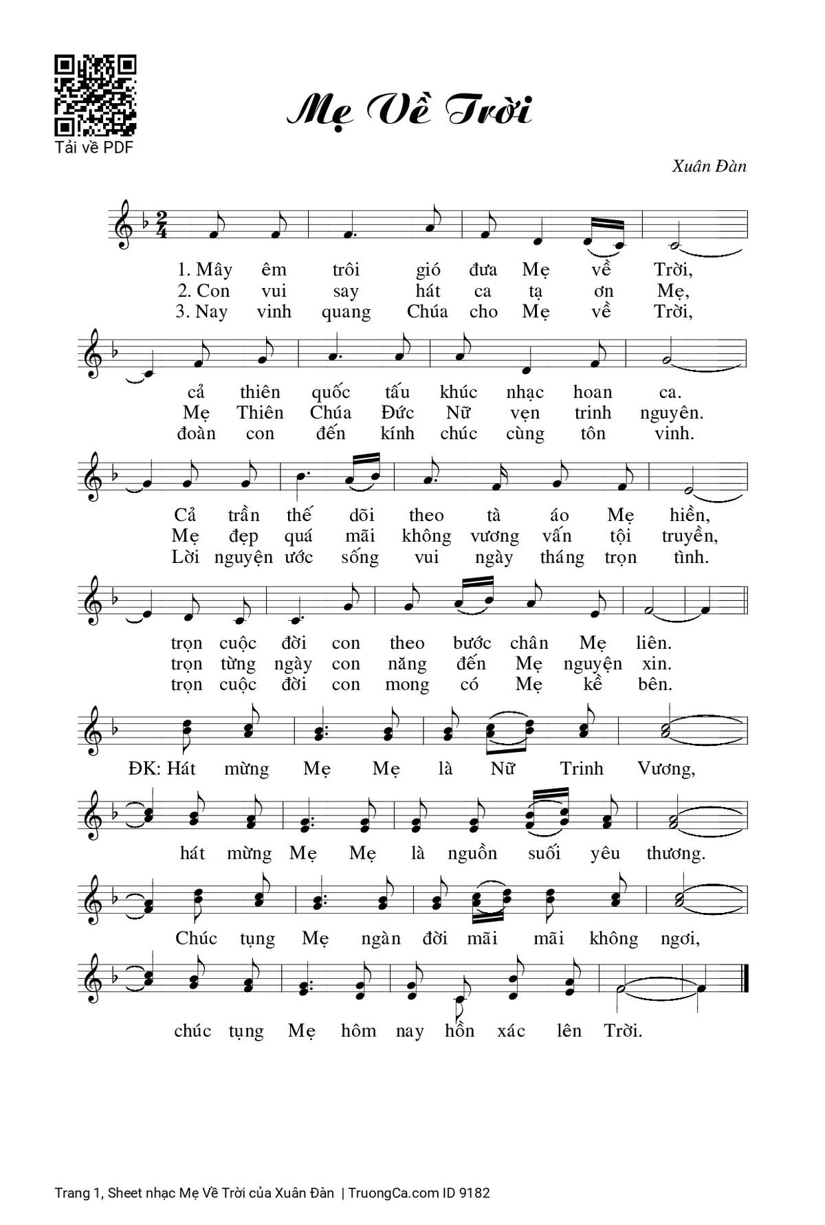 Các sheet PDF tương tự Mẹ Về Trời:
