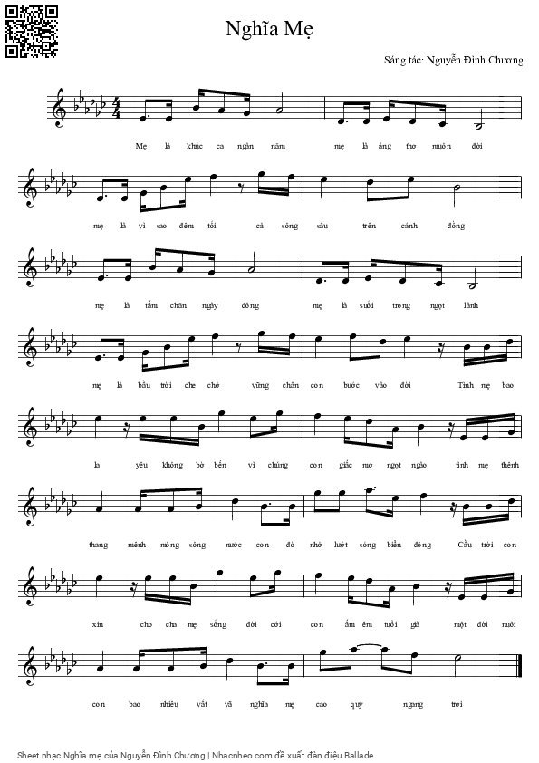 Nguyễn Đình Chương Mẹ là khúc ca ngàn năm Mẹ là áng thơ muôn đời [PDF] [Sheet] [Lời H.A] [Mp4/Midi]