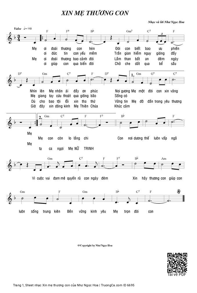 Như Ngọc Hoa Mẹ ơi đoái thương con hèn Đời con biết bao ưu phiền [PDF] [Sheet] [Lời H.A] [Mp4/Midi]