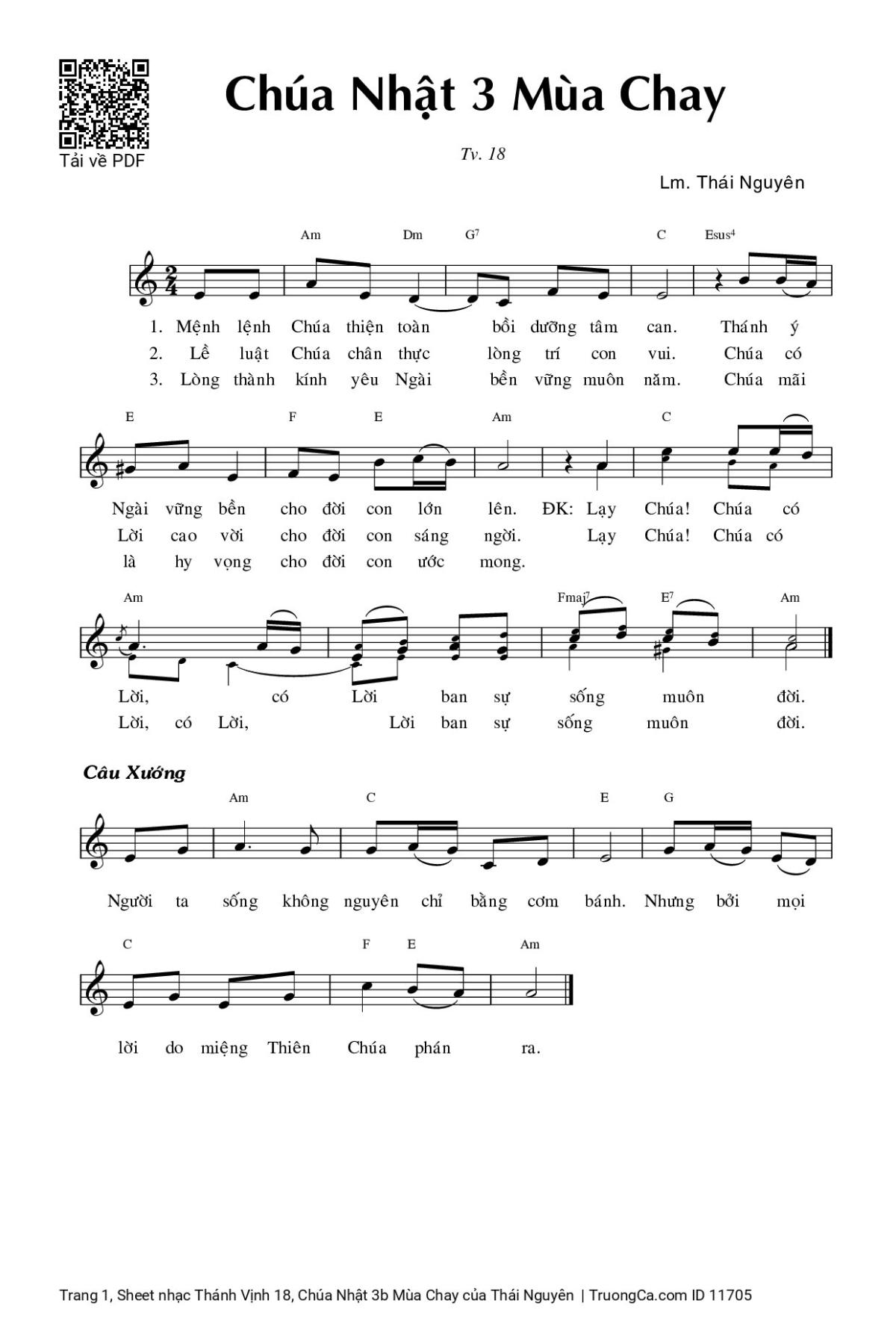 Thái Nguyên Mệnh lệnh Chúa thiện toàn bồi dưỡng tâm can [PDF] [Sheet] [Lời H.A] [Mp4/Midi]