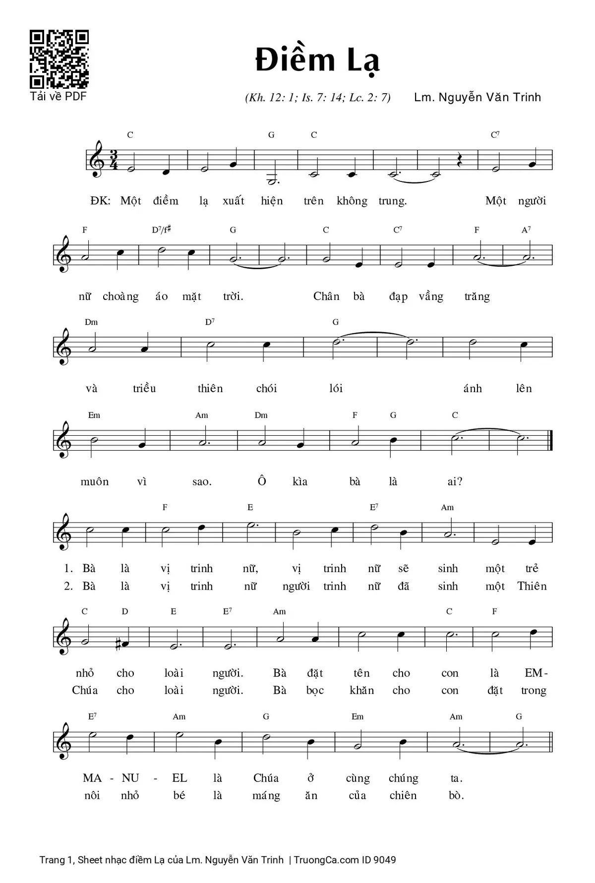 1. Bà là vị trinh nữ, vị trinh nữ sẽ sinh một trẻ nhỏ cho loài người. Bà đặt tên cho con là EM-MA-NU-EL là Chúa ở cùng chúng ta.