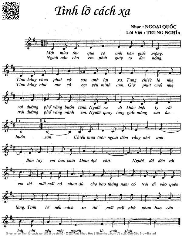 Nhạc Hoa Một mùa thu qua có anh bên giấc mộng Tình hồng chưa phai cớ sao anh lại xa [PDF] [Sheet] [Lời H.A] [Mp4/Midi]