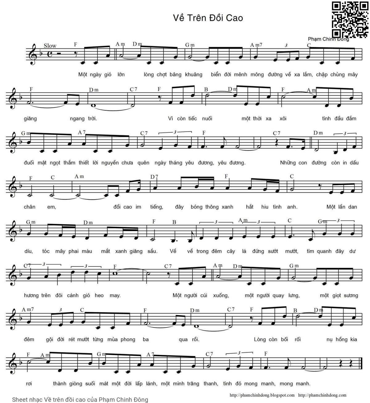 Phần nghe hát Về trên đồi cao (Phạm Chinh Đông) được nhúng từ Youtube, Musescore hoặc link ngoài và chịu sự kiểm soát bản quyền của bên thứ ba đó, vì vậy có thể bị xóa hoặc chèn quảng cáo bất kỳ lúc nào. Nếu bạn không nghe - xem được ca sĩ hát tức là đã bị Youtube hoặc Musescore kiểm soát.