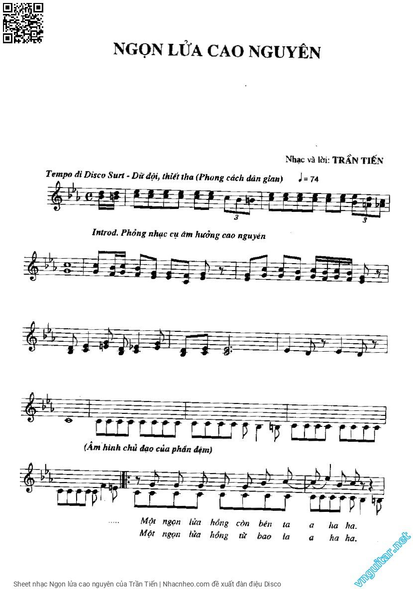 Trần Tiến Một ngọn lửa hồng còn bên ta á ha ha Một ngọn lửa hồng sáng rừng già a ha [PDF] [Sheet] [Lời H.A] [Mp4/Midi]