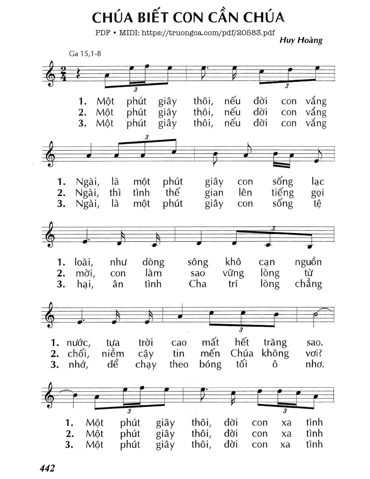 Điệp khúc: Chúa biết con luôn cần Chúa, như cánh diều cần gió để bay lượn, như tuổi đời cần có ngày tháng năm, như chim kia cần cánh để bay lên. Chúa