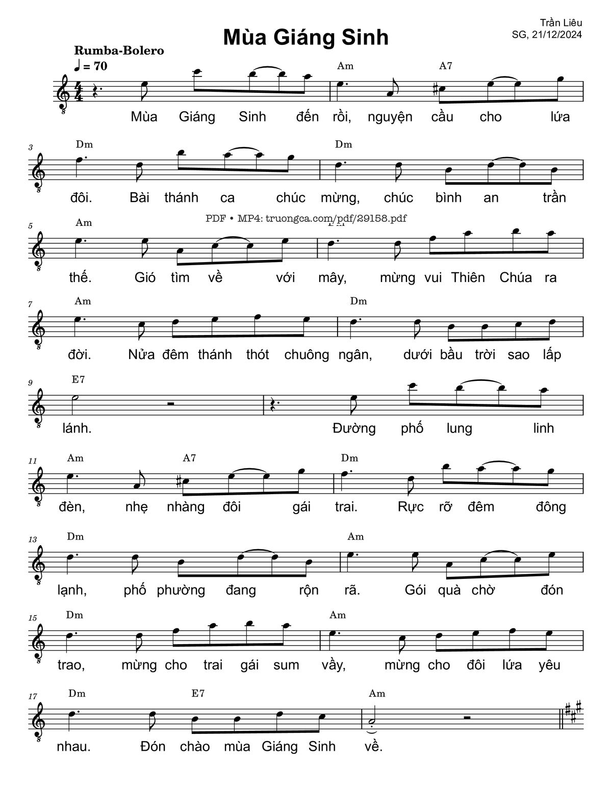 Trần Liêu Mùa Giáng Sinh đến rồi nguyện cầu cho lứa đôi [PDF] [Sheet] [Lời H.A] [Mp4/Midi]