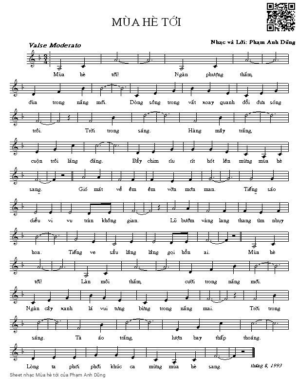 Chọn nút dấu + để tăng tông lên nửa cung, nút dấu - để giảm tông xuống nửa cung. Rê chuột vào hợp âm để xem các thế bấm hợp âm của bài hát Mùa hè tới.