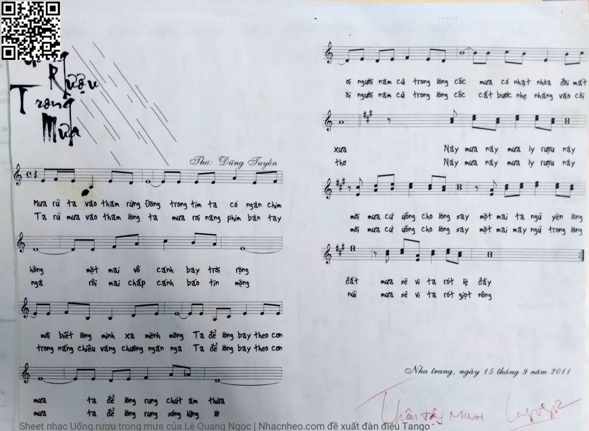 Lê Quang Ngọc Mưa rủ ta vào thăm rừng đông Trong tim ta có ngàn chim hồng [PDF] [Sheet] [Lời H.A] [Mp4/Midi]