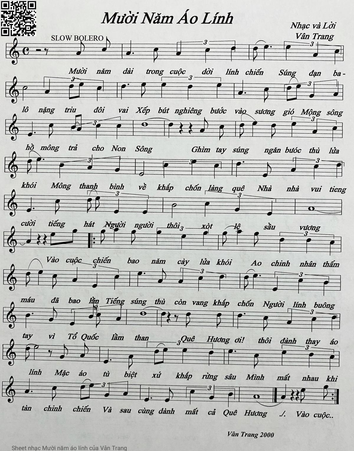 Vân Trang Mười năm dài trong cuộc đời lính chiến [PDF] [Sheet] [Lời H.A] [Mp4/Midi]