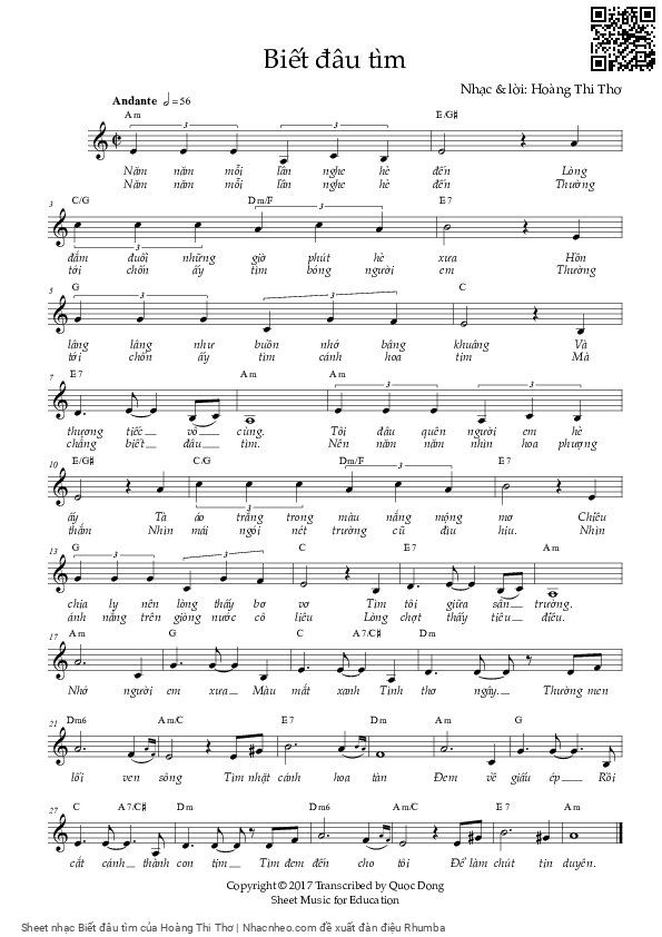 Hoàng Thi Thơ Năm năm mỗi lần nghe hè đến Lòng đắm đuối những giờ phút hè xưa [PDF] [Sheet] [Lời H.A] [Mp4/Midi]