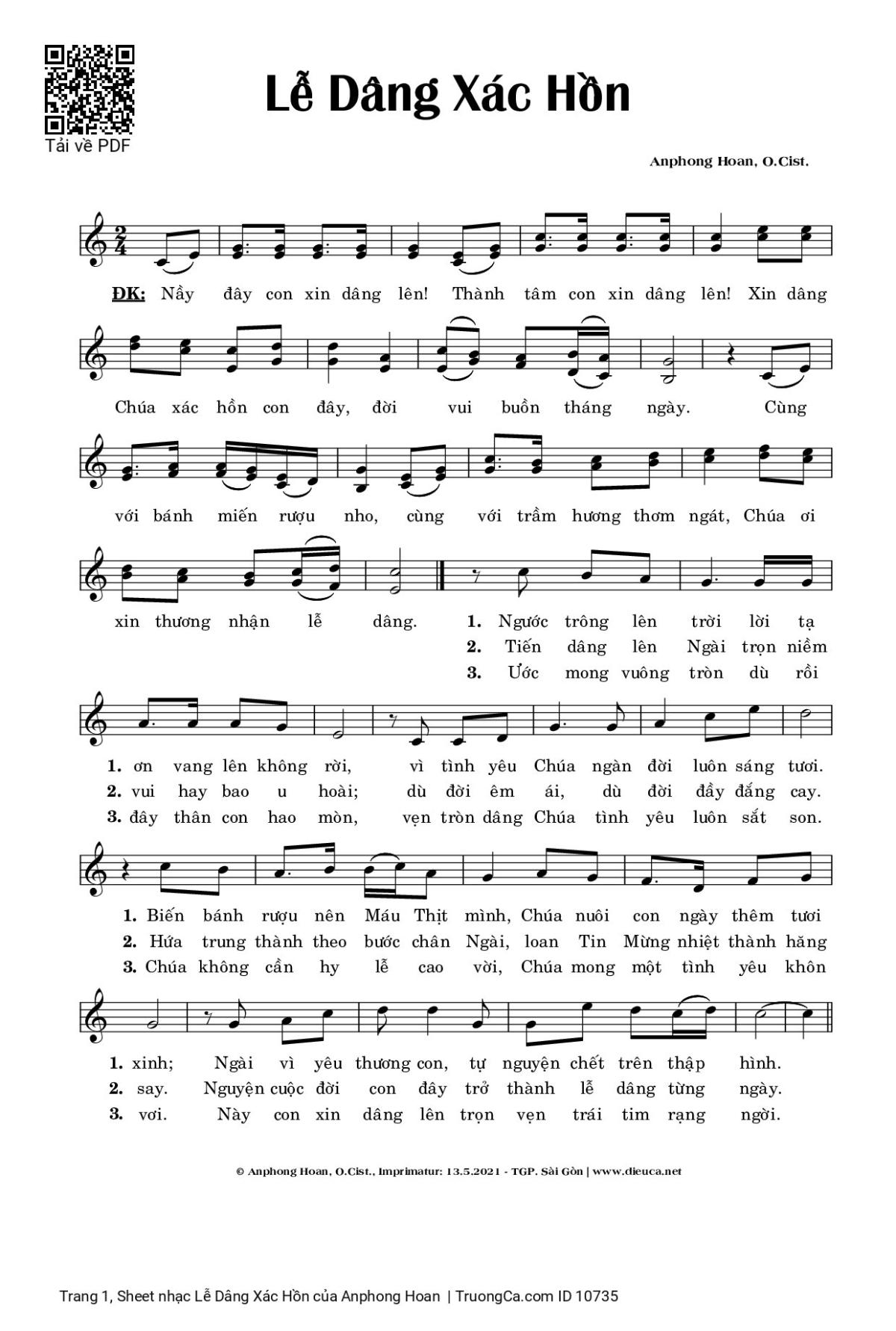 Phần nghe hát Lễ Dâng Xác Hồn (Anphong Hoan) được nhúng từ Youtube, Musescore hoặc link ngoài và chịu sự kiểm soát bản quyền của bên thứ ba đó, vì vậy có thể bị xóa hoặc chèn quảng cáo bất kỳ lúc nào. Nếu bạn không nghe - xem được ca sĩ hát tức là đã bị Youtube hoặc Musescore kiểm soát.