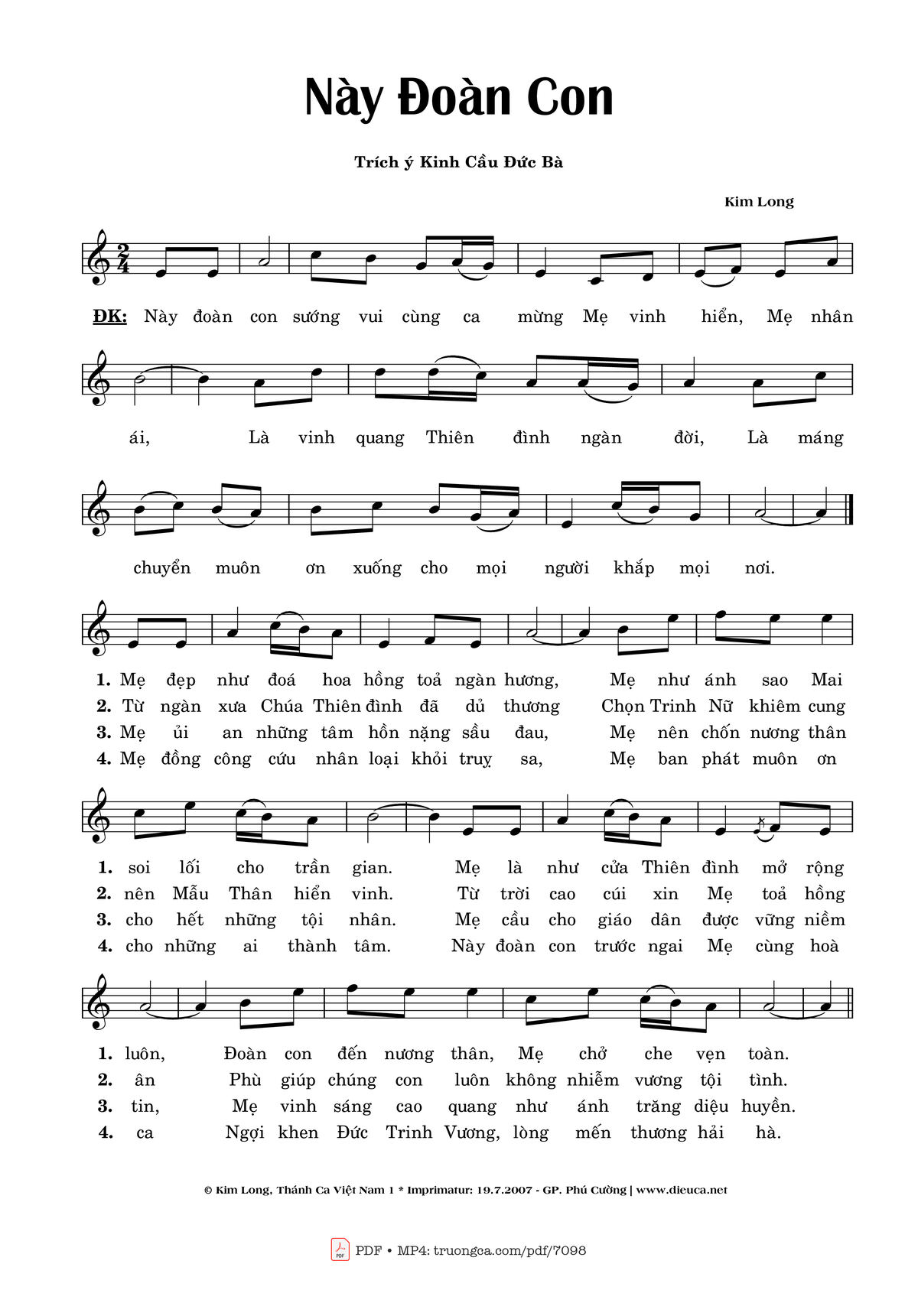 Kim Long Này đoàn con sướng vui cùng ca mừng Mẹ vinh hiển [PDF] [Sheet] [Lời H.A] [Mp4/Midi]