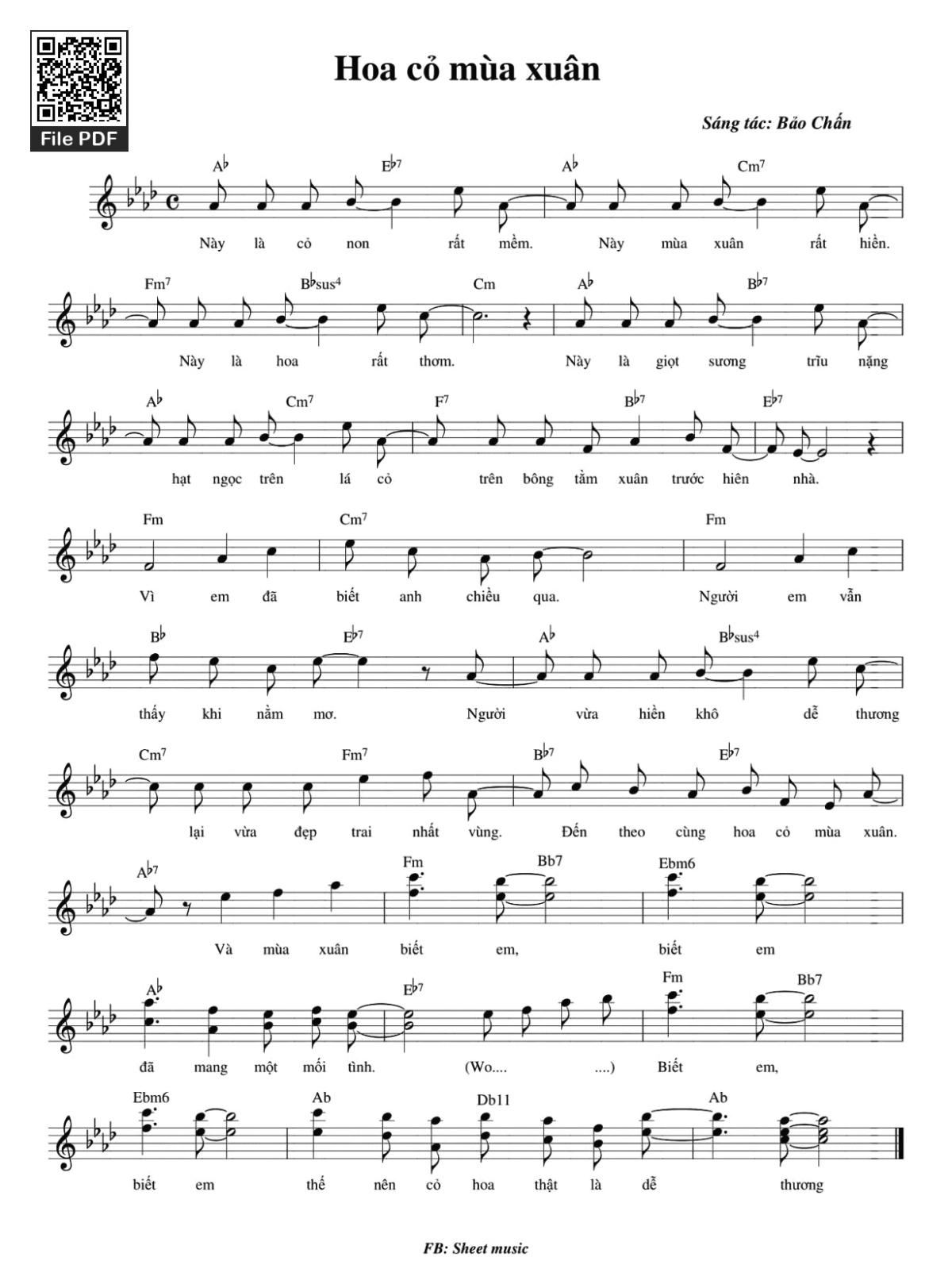 Phần nghe hát Hoa cỏ mùa xuân (Bảo Chấn) được nhúng từ Youtube, Musescore hoặc link ngoài và chịu sự kiểm soát bản quyền của bên thứ ba đó, vì vậy có thể bị xóa hoặc chèn quảng cáo bất kỳ lúc nào. Nếu bạn không nghe - xem được ca sĩ hát tức là đã bị Youtube hoặc Musescore kiểm soát.