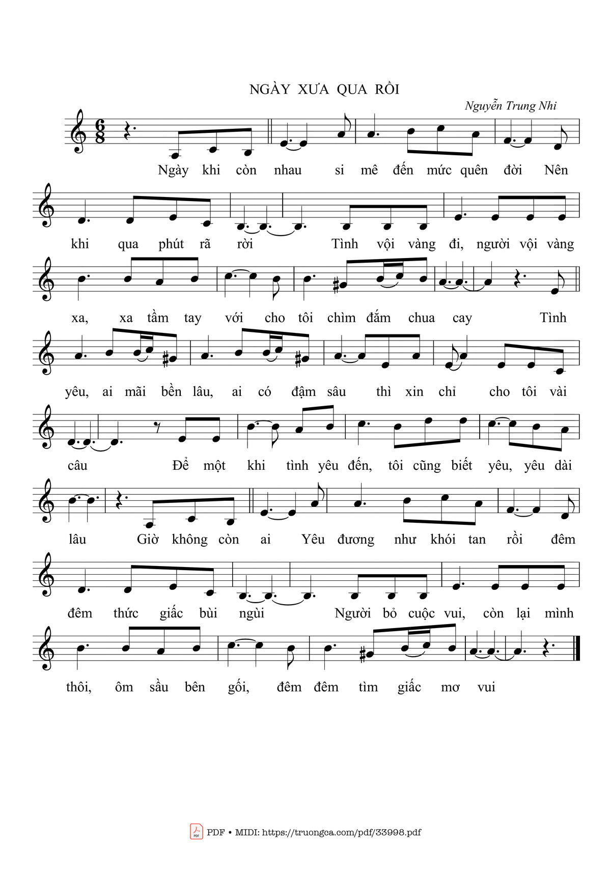 Nguyễn Trung Nhi Ngày khi còn nhau si mê đến mức quên đời [PDF] [Sheet] [Lời H.A] [Mp4/Midi]