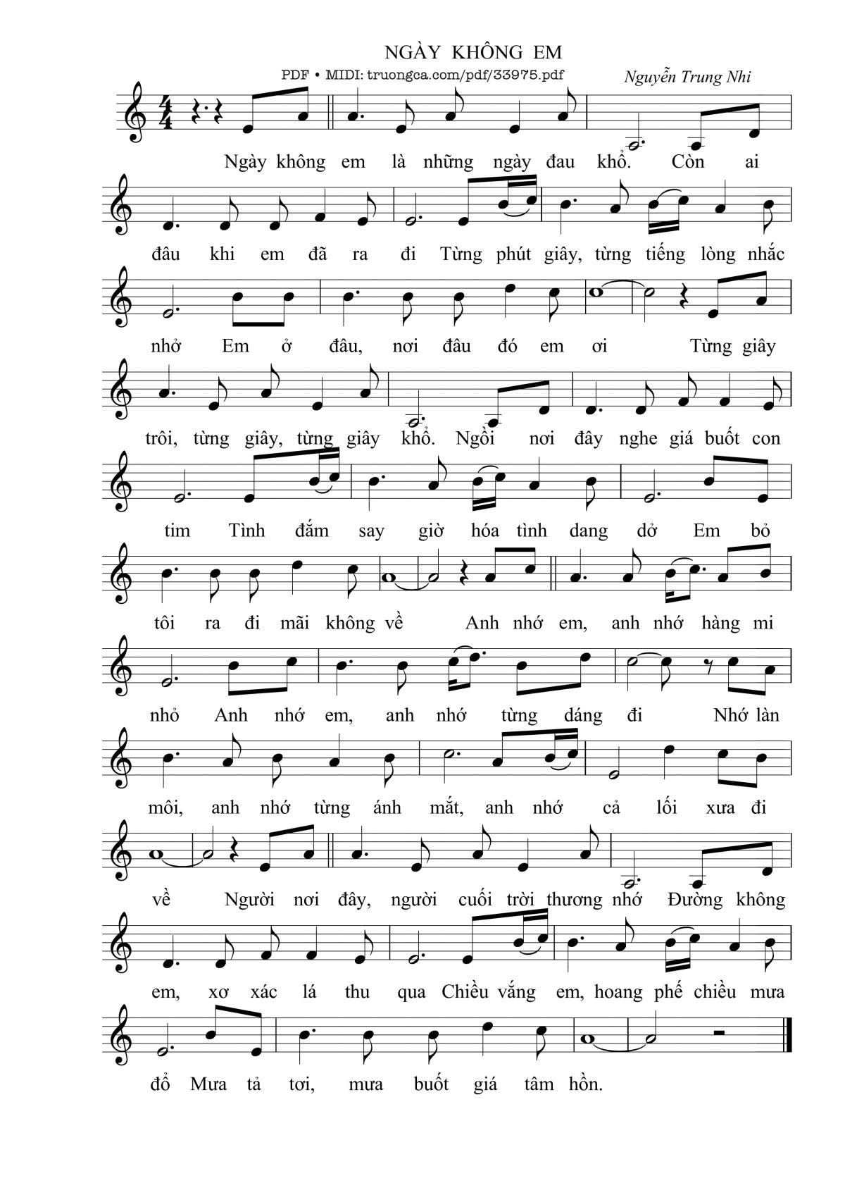 Nguyễn Trung Nhi Ngày không em là những ngày đau khổ Còn ai đâu khi em đã ra đi [PDF] [Sheet] [Lời H.A] [Mp4/Midi]